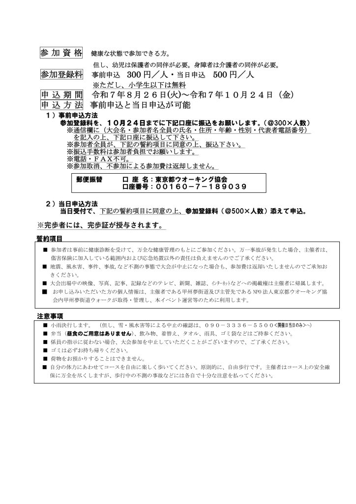 ②郵便振替で口座名:東京都ウオーキング協会(口座番号 00160-7-189039)へ